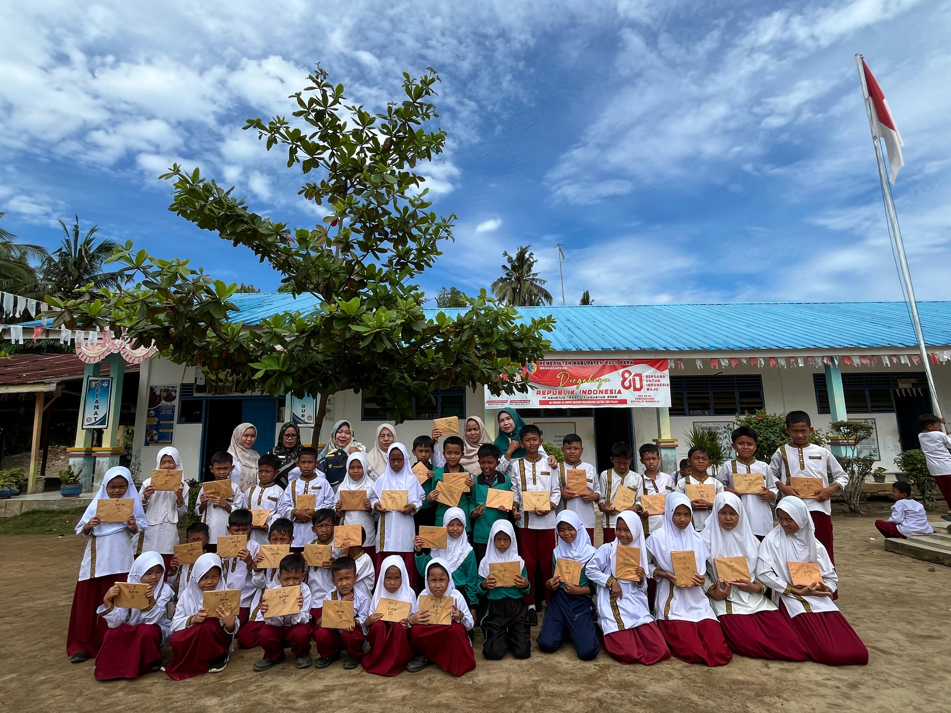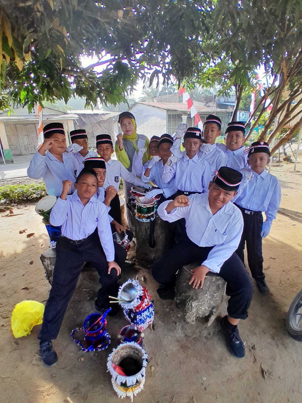 siswa/siswi upt sdn 05 empat negeri menyambut hari kemerdekaan RI ke 80